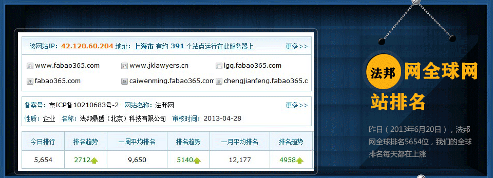查询工具:http://www.aizhan.com/siteall/fabao365.com/