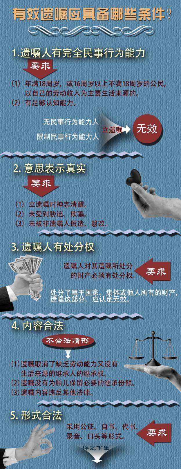 继承法规定:没有订立遗嘱或遗赠、遗赠抚养协议的,需要在继承开始后按照法定继承办理。而法定继承的均分原则往往会带来家庭纠纷,也难以体现逝者的真实意愿。于是,订立遗嘱成为越来越多人的选择。然而,据统计,超过六成的遗嘱被法院宣判无效,这惊人的数据告诉我们:如果不懂点关于立遗嘱的法律知识,立的遗嘱很容易就无效了。别担心,深圳文开齐律师(微信号:qq764641285)带你图解遗嘱。