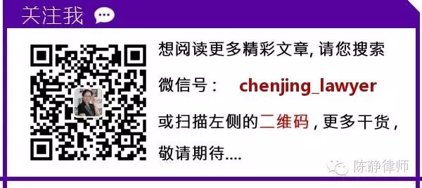 关注微信“陈静律师”(微信号chenjing_lawyer),阅读更多精彩文章。使用微信扫描左侧二维码添加关注。