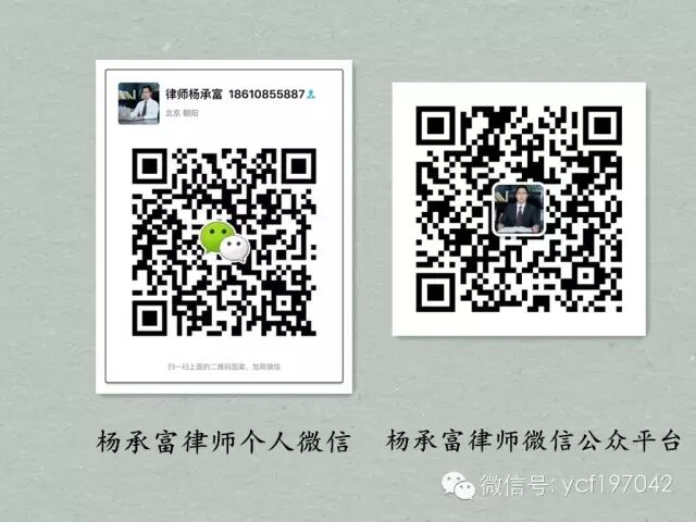 关注微信“杨承富律师”(微信号18610855887),阅读更多精彩文章。使用微信扫描左侧二维码添加关注。