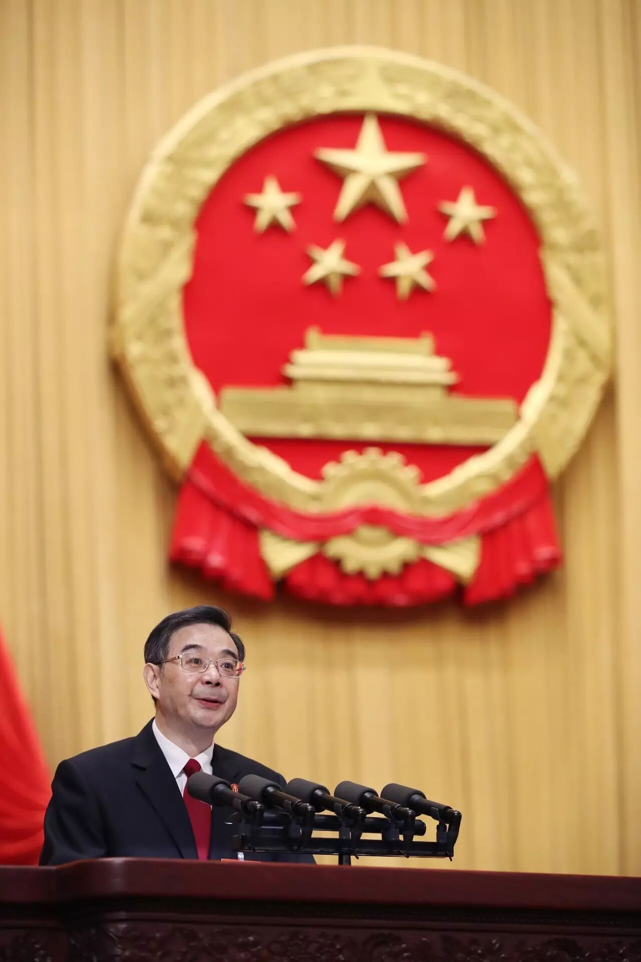 3月12日,十二届全国人大五次会议在北京人民大会堂举行第三次全体会议。最高人民法院院长周强作最高人民法院工作报告。新华社记者兰红光摄