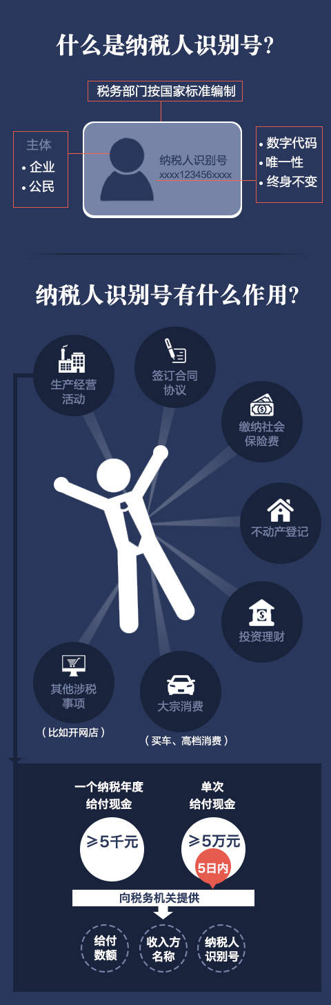 有了纳税人识别号后相当于把“灰色收入”放在了明处,意味着以往可能存在灰色地带的现金往来将从付款方源头上予以控制,付款方将钱给了谁必须将其纳税人识别号登记在册,从而实现税收的全程监管。